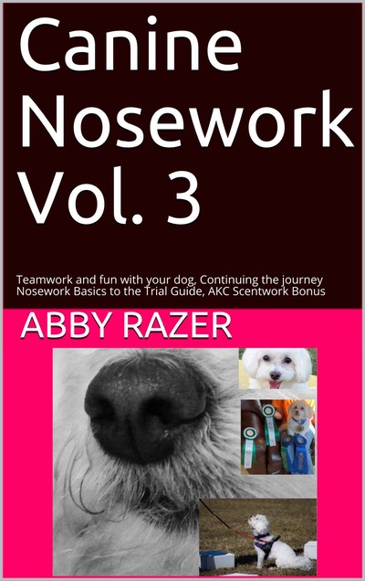 One dog and handler's journey through nosework. Your guide to the basics of canine nosework continuing from volume 2. Explore the upper levels of NW 2 and NW 3. Includes a bonus chapter about AKC Scentwork. Enjoy a fun and positively based approach to training your dog in canine nosework. Any dog can participate, prior experience is not necessary. Your dog will learn to find and alert to specific odors. Promotes a calm and focused dog. Creates a wonderful bond between you and your dog. Book includes link to selected lesson videos for extra training help. This volume includes a sport based dog mystery for extra fun for the both of you. Join Lily and Abby on this adventure today.
